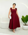 Confeccionado em tecido Sensorial, este vestido possui um recorte quadrado que destaca toda a beleza da peça. O detalhe das mangas laço é simplesmente maravilhoso, adicionando um toque especial ao seu visual.